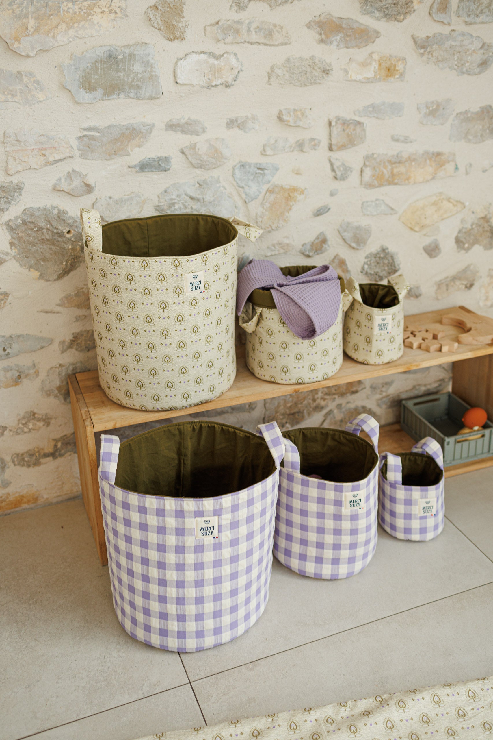 Solides et souples à la fois, nos paniers accompagnent la vie de famille avec style : ils accueillent jeux, doudous, livres ou linge selon les besoins et les envies.
